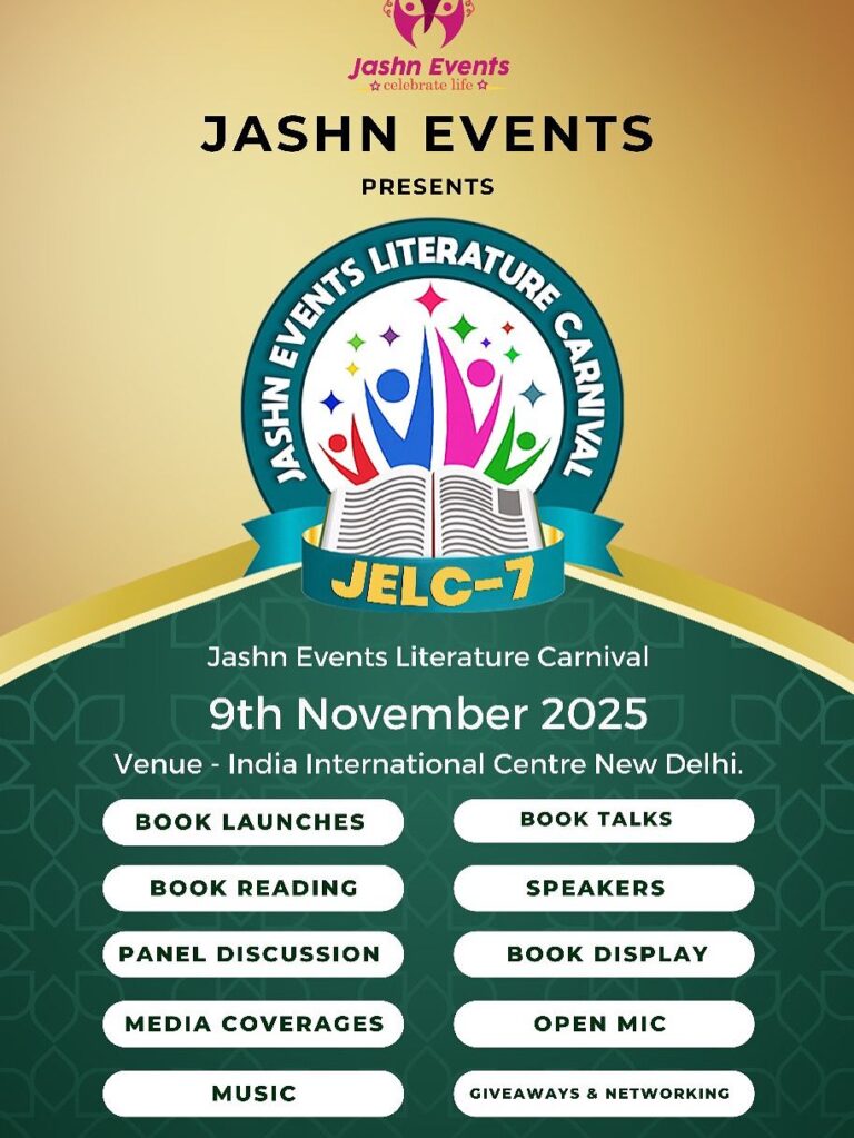 This literary festival features a variety of presentations and readings by authors, with the primary objectives of promoting the author’s books and fostering a love of literature and writing. Please block your date & join us on Sunday , 9th of November 2025, 2 PM onwards at India International Centre New Delhi .